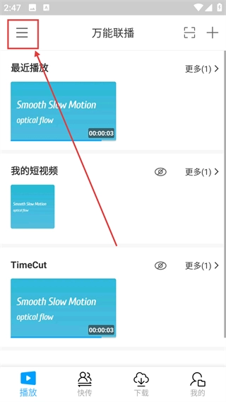 在【万能联播】的播放界面点击左上角的菜单按钮,即可展开功能列表,找到各类工具与设置的入口。