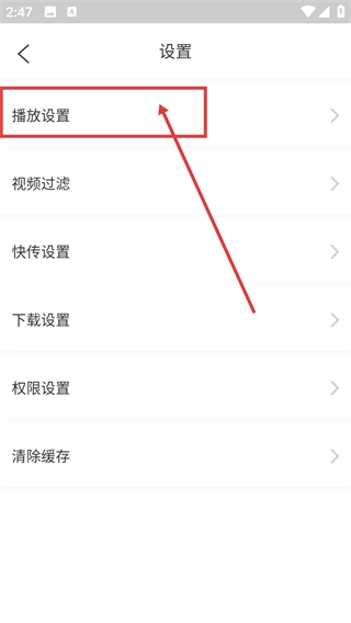 进入设置页面后,找到并点击【播放设置】这一选项,即可进入与播放相关的配置界面,在这里可以对视频播放的各类功能进行调整。
