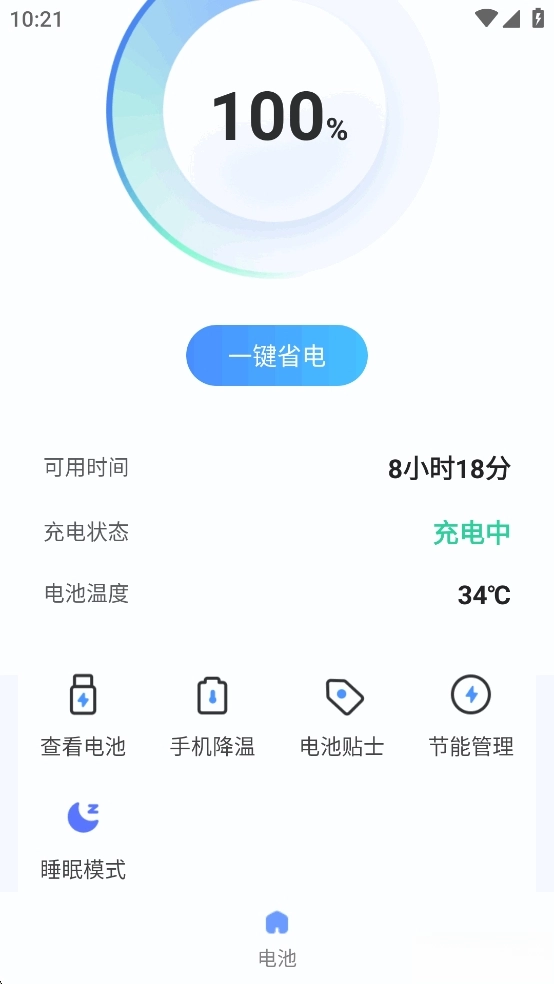 《节能助手》是一款专门为用户打造的电池管理应用,在这里你可以随时查看手机电池的各项详细信息,像当前电量、电池实时温度、剩余可用时长等都能一目了然;同时还能获取不少实用的电池使用技巧,帮助你更好地保养电池;它还具备一键降温功能,能快速降低手机电池温度,避免过热影响使用;此外,你还可以根据自己的需求自定义省电模式的开启时间,从而更高效地管理手机电池,让电池使用更持久、更健康。