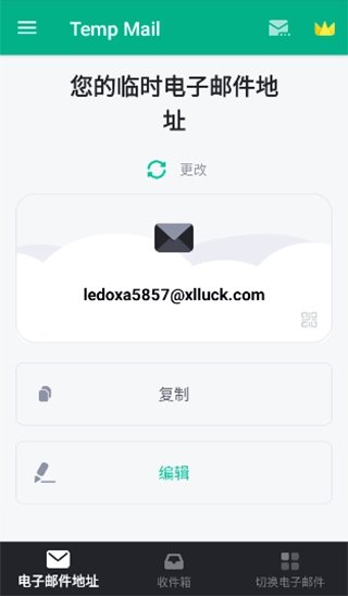 1、进入首页就能看到生成的临时电子邮箱地址;