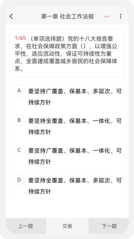 这个题库尤其重视高频考点,把这些考点归纳出来,让学员进行重点复习。毕竟考试里常常会出现一些反复考查的知识点,只要掌握了这些内容,考试的通过率就能显著提升。除了高频考点之外,社会工作者100题库还设有章节练习板块。这些题目依据章节来划分,助力学员对每个章节的知识展开系统性的复习。借助这种方式,学员能够更深入地理解并熟练掌握每个章节的知识点。