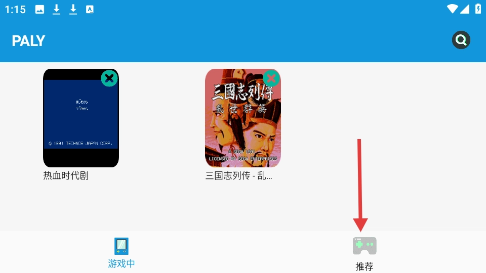 1、点击应用底部的【推荐】按钮,即可进入游戏推荐页面。