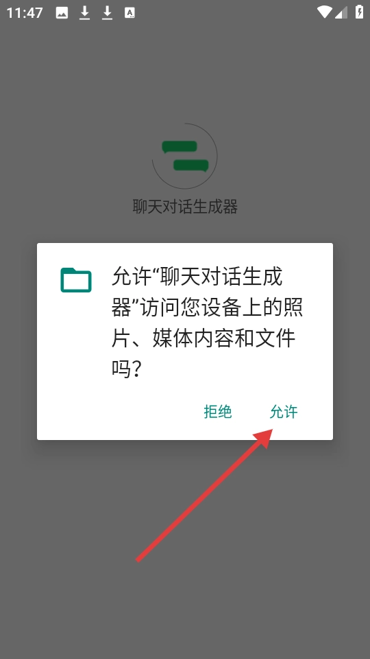当“聊天对话生成器”应用请求获取设备照片、媒体内容与文件的访问权限时,选择点击【允许】按钮。