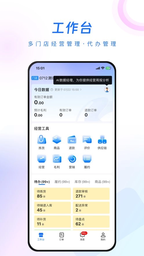全链路经营:软件覆盖产品管理、库存管理、订单履约等全链路经营环节,助力商家实现高效运营。