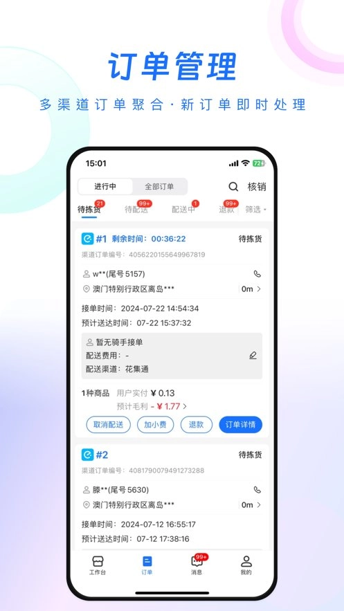 一站式接入多个外卖和到家服务平台,提高效率。