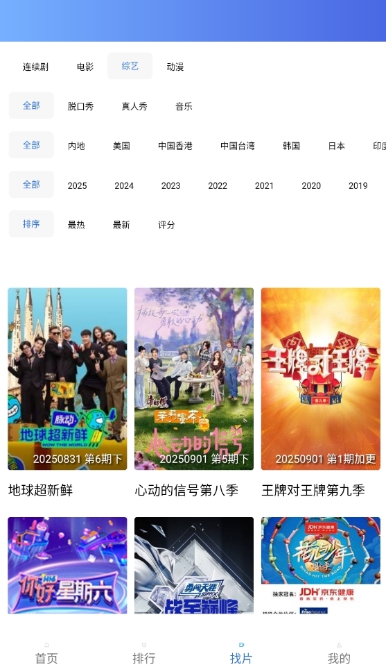 蓝天视频免费追剧是一款能够满足你多种追剧需求的多功能影视播放器。软件汇集全网最新、最热的影视内容,无论你是想看电影、电视剧、综艺,还是动漫、纪录片、短剧,这里都可以满足你的需求,并且在这里看剧不用会员,也不用看广告。