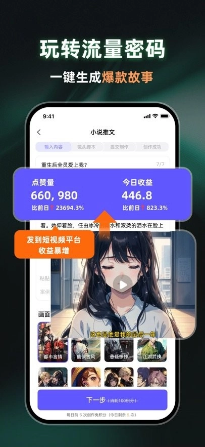 只需输入文字描述,就能一键生成视频,支持图生视频创作,轻松实现一键成片。