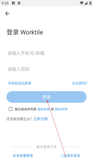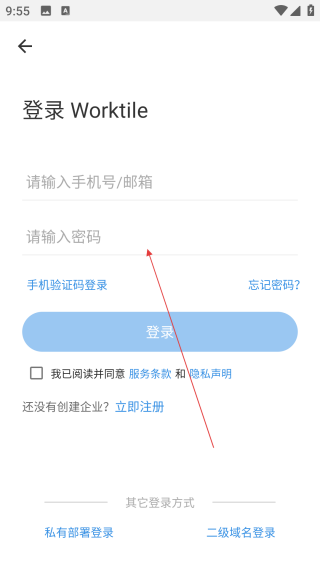 2、随后输入密码,勾选协议,做好登录准备。