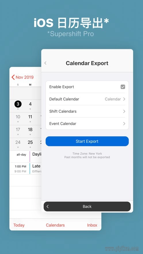 可以将班次导出至iOS日历(如Google或iCloud),方便与亲友分享您的日程安排。