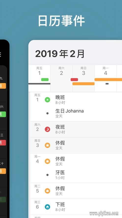 生日、约会以及来自谷歌或iCloud日历等外部日历的其他事件,都能够和您的班次一同显示。