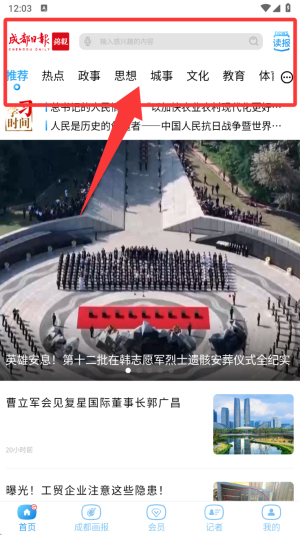 2. 针对不同的新闻话题,我们设置了不同的分类,包括经济新闻、生活新闻、政策新闻,一键切换。