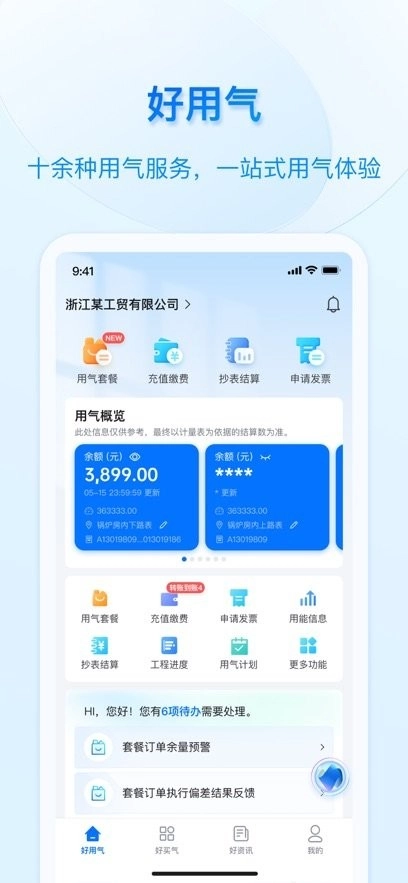 这是一款面向广大气体用户的服务型应用,集成了气费缴纳、抄表查询、用气申请、检测周报等实用功能。