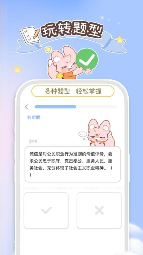 提供了趣味的闯关学习,用户可以边玩边学,轻松进行刷题闯关,完成备考任务。