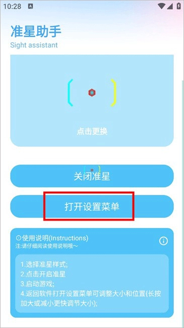 点击“开启准星”