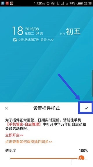 返回到手机桌面上,能看到已经添加的万年历插件