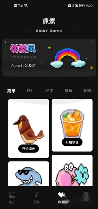 在像素模式下,就能直接调用画册开启涂色创作,所有内容都呈现出像素化的风格。