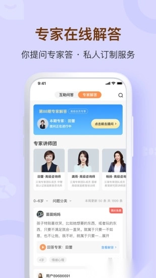 海量的育儿课程既能给出问题的解决办法,又能引导能力的培养,每天都有专家在线答疑,在私人定制服务里体验最前沿的教育模式。