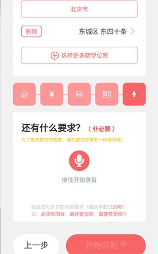 最后说明一下自己是否有额外要求,接着点击开始匹配,登录后就能发布租房信息了。