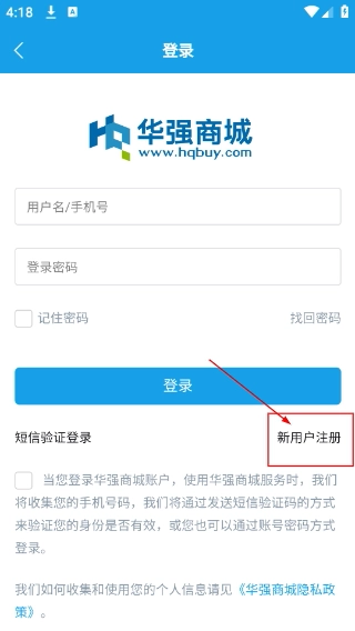 2、进入登录页面后,点击【新用户注册】按钮,即可开启账号注册流程。