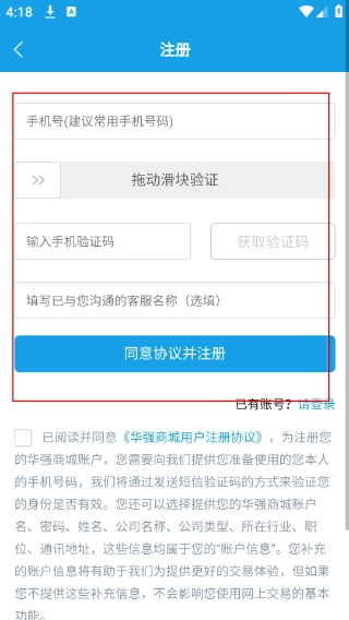 3、进入注册页面后,先填写手机号,接着滑动滑块完成验证,然后点击【获取验证码】,选填客服名称后,点击完成账号注册。