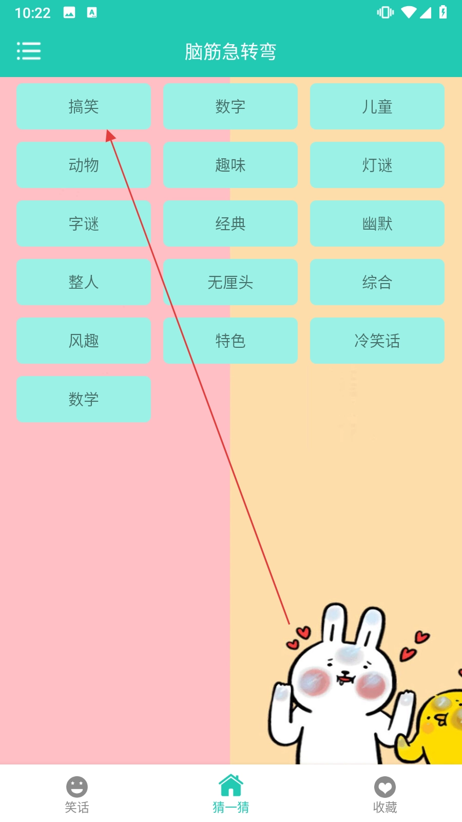 1、启动《笑话大王全集》应用,进入【猜一猜】板块后,选择并点击【搞笑】类别。
