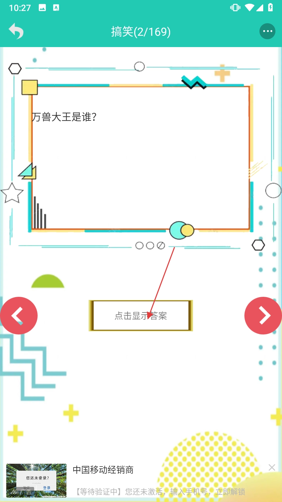 2、进入【搞笑】分类后,找到脑筋急转弯题目进行查看,点击右侧箭头即可切换题目。