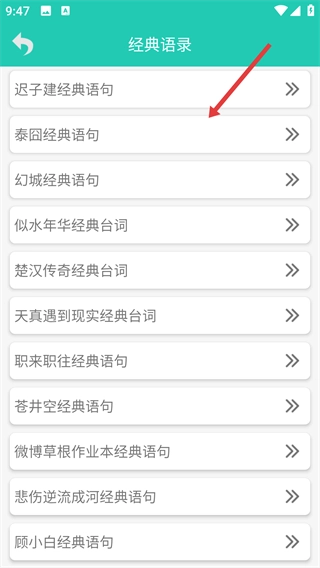 2、点击“经典语录”选项,即可进入经典语录的分类汇总页面。