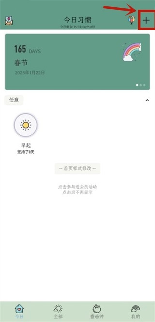 2、全部习惯:清晰展示所有想要养成的好习惯,直观查看习惯养成进度。