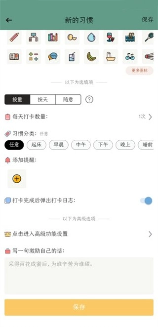 6、自定义加习惯:支持按需添加习惯内容,打造专属于自己的养成清单。
