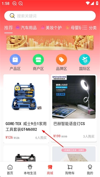 1、在莱存的首页,点击底部的商城选项,进入商城页面。