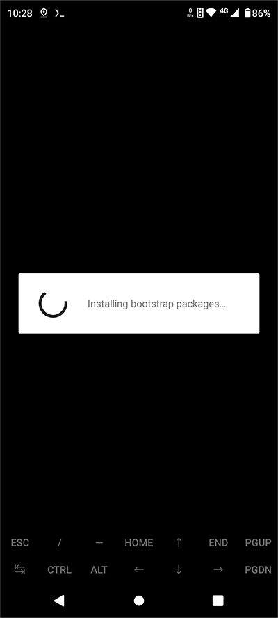 首次使用Termux时,需要等待“Installing bootstrap packages(安装引导程序包)”这一过程完成,具体可参考下方图示。