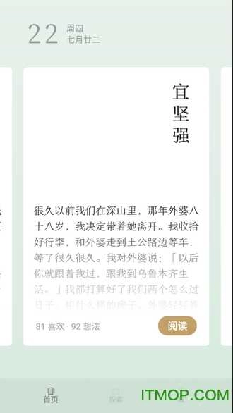 它不只是一款阅读工具,更是一份为期365天的阅读契约:每天会准时推送一篇能经受住时间考验的文字;它是一座让人专注沉浸的数字孤岛——没有弹窗干扰,没有热搜推送,也没有多余的功能,只有简洁的排版、富有呼吸感的留白,以及恰到好处的阅读节奏。在这里,你会遇到观点独到犀利的创作者、心思细腻敏锐的读者,还有那个更加沉静、内心更丰盈的自己。