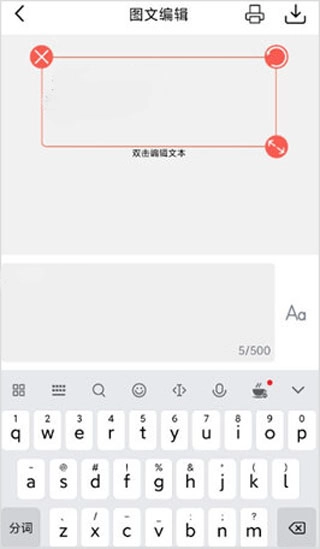 这里以图文编辑为例,点击【文字】选项。双击编辑框输入文本内容后,点击输入框右侧的“Aa”,拖动圆形图标就能调整字体大小。