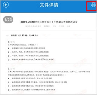 目前支持打印Word、TXT、PDF格式文件,您可先选择需要打印的文件,查看其详情后,点击页面右上角的打印图标就能完成打印操作。