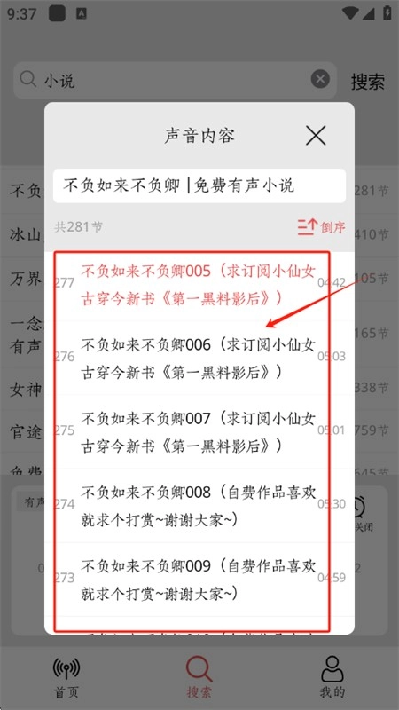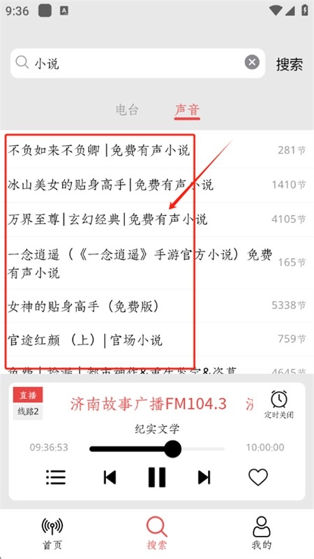 4、直接点击章节就能快速播放和收听