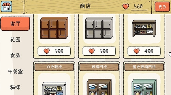 超多的家具和时装道具等你用红色爱心购买,让这些物品有秩序的摆放。