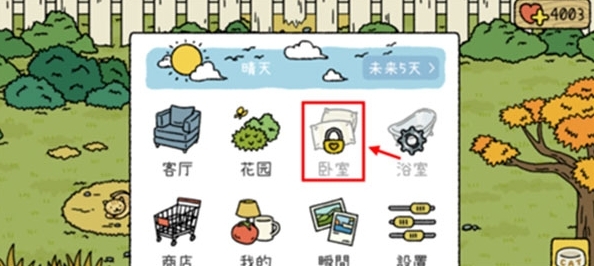 点击右下角的菜单按钮,接着选择“卧室”选项,就能进入二楼的房间了。