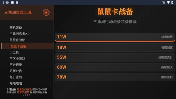 三角洲鼠鼠工具是一款专业的《三角洲行动》游戏辅助工具,它占用内存极小,不会过多占用用户的存储空间。工具内功能详尽,能帮助用户了解游戏中的各类参数,学习丰富的游戏知识,让玩家在游戏中有更多策略选择,使游戏过程更加轻松简单。