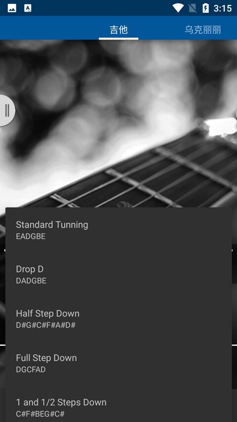 2、乐器调音功能,可模拟吉他、乌克丽丽、四弦/五弦/六弦贝斯、小提琴等多种乐器,能对这些乐器进行调音及试音操作。