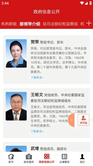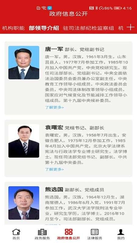 本应用是中华人民共和国司法部推出的国家级移动端政务信息公开与公共服务平台。