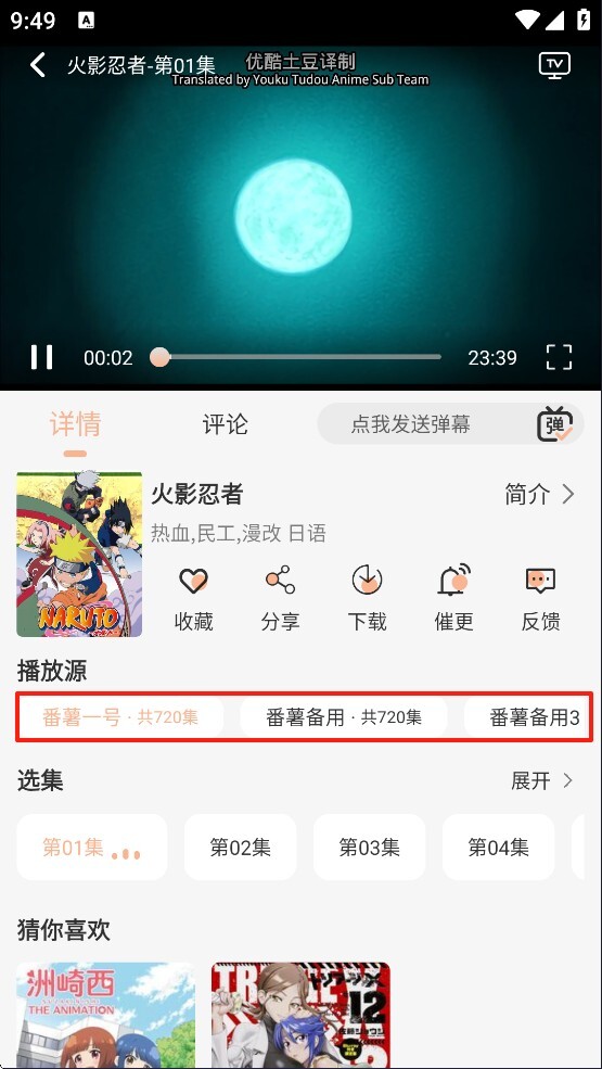 3、每部番剧大多会配备1个及以上的播放源,便于用户切换播放渠道