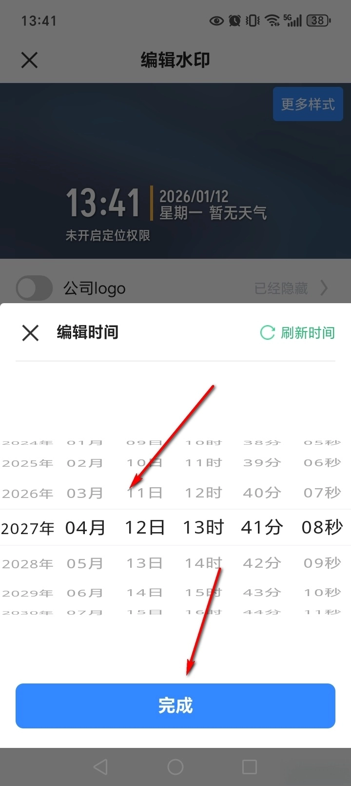 修改时间后点击【完成】