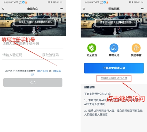 第二步:点击继续访问网页进行入驻