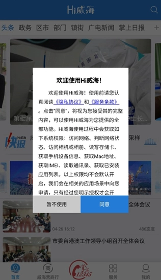 hi威海手机客户端是威海报讯融媒体有限公司全新打造的威海城市客户端,它整合了威海日报、威海晚报、威海新闻网等本地主流媒体资源,始终围绕中心工作、服务发展大局,为用户实时推送威海各类新闻资讯,助力大家及时了解城市动态。同时,客户端还汇聚政务信息与便民服务内容,构建起集新闻发布、政民互动、智慧服务于一体的融媒体平台,政府权威信息会第一时间在此发布,确保用户不错过任何重要内容。