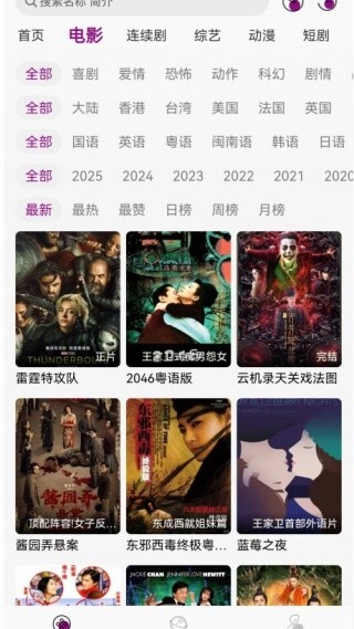 3、软件首页提供了各种影视作品,不同风格,不同语言……可随便电话观看。