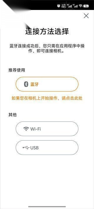 3、接着选择连接方式,此次可通过蓝牙、WIFI、USB这三种途径进行连接。