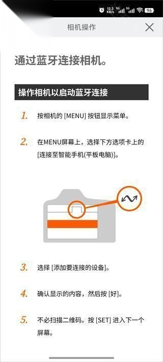 5、接着按照应用给出的教程,对需要连接的相机执行相应操作;