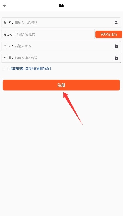 2、输入手机号码获取验证码,设置登录密码并勾选相关协议后,点击注册按钮即可完成账号创建。