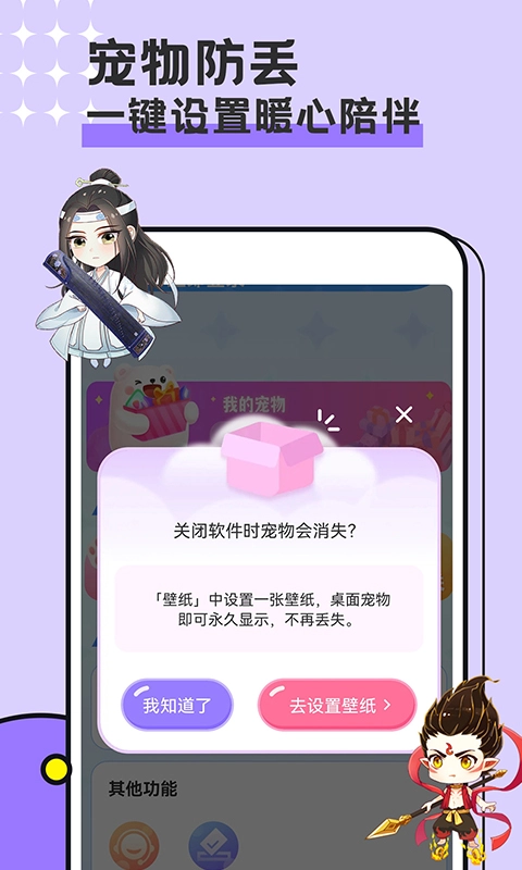图图宠物能帮你把喜爱的各类二次元角色养在手机里,让他们随时随地陪伴你,一起度过美好的时光!