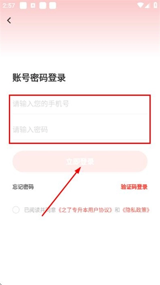 3、在手机号密码登录页面填写对应的手机号与密码,勾选相关协议后,点击登录按钮即可完成账号登录操作。